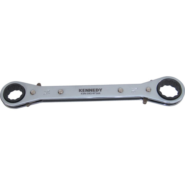 For use where access is limited. With a built-in ratchet mechanism to provide speed and a reversible action which can be achieved by depressing the reversing lever or by simply turning the wrench over. All ratcheting ring wrenches are manufactured from chrome vanadium steel bi-hex rings.