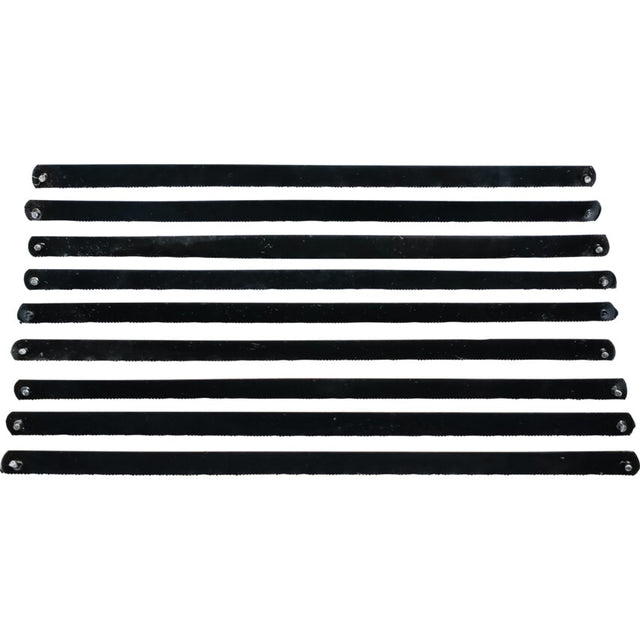 These flexible back, bi-metal hacksaw blades are designed for use across a wide range of ferrous and non-ferrous materials. Suitable for use with both mini hand saws and junior hacksaws, the blades are supplied as a pack of 10. Constructed from a low alloy steel. Blades only, hacksaw body sold separately.