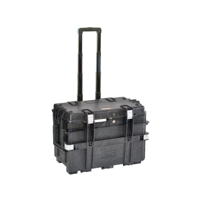 This all-in-one tool box is highly versatile, containing a variety of compartments in different sizes. The unique 'open position' drawer system allows for easy access to an array of tools, making this box an ideal companion for numerous applications. It features a central lock and key system, robust, self-oiling wheels and a telescopic handle.