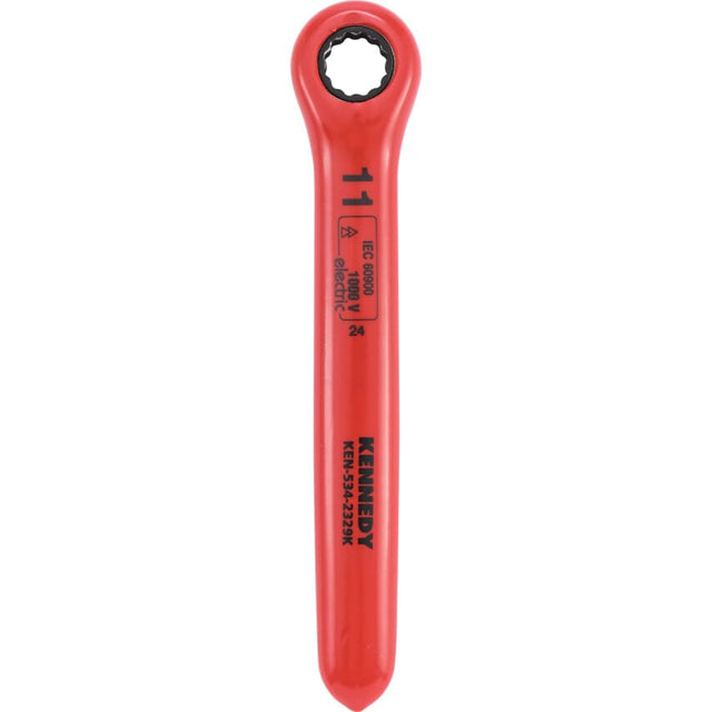 These insulated ratchet ring spanners from Kennedy feature multiple layers of safety insulation to protect against up to 1000 volts of electricity.Features and Benefits Multi-layer insulated to protect against up to 1000 volts Sizing details printed on the body of the tool for easy identification Available in a range of sizes to suit all requirementsStandards IEC 60900