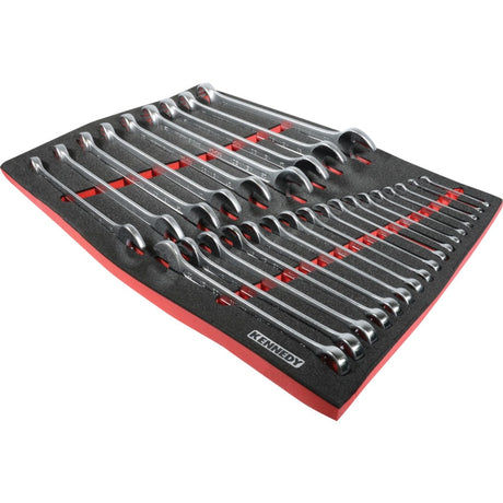 26 Piece Industrial Combination Spanner Set in Tool Control Full Width Foam Inlay Tool Chests
