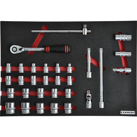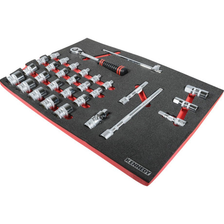 30 Piece Professional Metric Socket Set 1/2" in Tool Control Full Width Foam Inlay for Tool Cabinets
