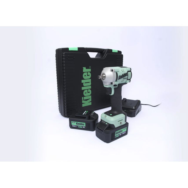 Ultra Compact 3/8 Impact Wrench, only 110mm in length, making it ideal for use in tight access areas and compatible with 3/8 slim-line sockets, from 6mm diameter. Powered by a digital brushless motor, that optimises run-time and performance, it boasts 340Nm maximum torque delivery. Weighs just 1.4kg with a 2.0Ah battery fitted, so it is easy to manoeuvre and comfortable for prolonged use. Equipped with 3 torque and speed modes (High/Medium/Low) , as well as a variable speed trigger (forward & reverse) for control and versatility across a wide range of applications. Also features integrated LED work light that illuminates the work area from the base of the tool. Supplied with 2 x 4.0Ah Battery, Charger and Carry Case, 340Nm of torque from an ultra compact design; only 110mm length. Features Kielder G-Square Technology to reach top torque faster. 3 torque and speed modes (High/Medium/Low) , for more versatility across a wide range of fastenings. Variable speed in forward and reverse, enhances the control in use. Electronic brake, which offers near instant stopping power. Professional quality digital brushless motor provides smooth, frictionless operation; prolongs battery life and optimises power delivery. Integrated LED light illuminates the work area from the base of the tool. 3/8" Square Drive with ball bearing to secure socket. Compatible with Kielder's interchangeable TYPE18 18V Li-ion battery system. 3 year manufacturers warranty when registered with Kielder, terms and conditions apply. Max Fastening Torque (High/Medium/Low) : 340Nm/240Nm/150Nm Max Bolt Diameter: M16 Drive: 3/8 Square Tool Length: 110mm Weight (with 4.0Ah battery) : 1.6kg Motor: Digital Brushless Gearbox: All Metal No Load Speed: 0-1600rpm/2000rpm/2600rpm Impact Rate: 0-3300ipm Vibration: 10 m/s2