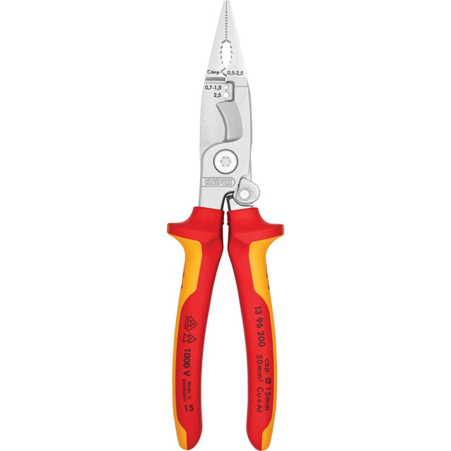 Designed to save you time and avoid the need to change tools for varying functions, this multi-purpose, 6 function tool has the capability to cut cable, strip wire, deburr, bend, grip and crimp wire. Manufactured from high-grade special tool steel that has been forged and multi stage oil-hardened. Finished with either a chrome plating or a black atramentised construction.