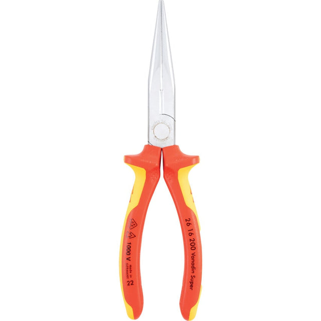 These long nose side cutters have long flat round jaws that are highly loadable, with elastic precision points with blades for hard wire diameter 2.2mm and medium wire diameter 3.2 mm. The cutting edges are separately induction hardened for durability and longer working life. They are 200mm/8-inch long and have a two-component comfort handles. Available in either a chrome plated finish or atramentised black.