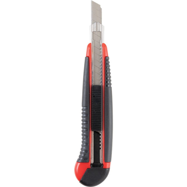 These autoload and lock knives are designed for safety and efficiency. Comprised of a rubber coated ABS plastic handle, steel blade slides and either an 8 or 13 segment snap off blade, the product works to reduce downtime. Finished by a unique spring loaded automatic blade replacement and auto lock. Features and Benefits Snap off blade reduces tool downtime as you can simply remove the blunt segment to reveal a fresh, sharp edge on the next segment Rubber coated ABS plastic handle improves user comfort, control and grip Steel blade slides prevent blade slippage and ensures a smooth cutting action Auto lock feature and spring loaded automatic blade replacement maximises safety to reduce accidental cutting Available as either an 8 or 13 segment snap off blade knife to suit your needs Typical Applications Workshops Warehousing Retail