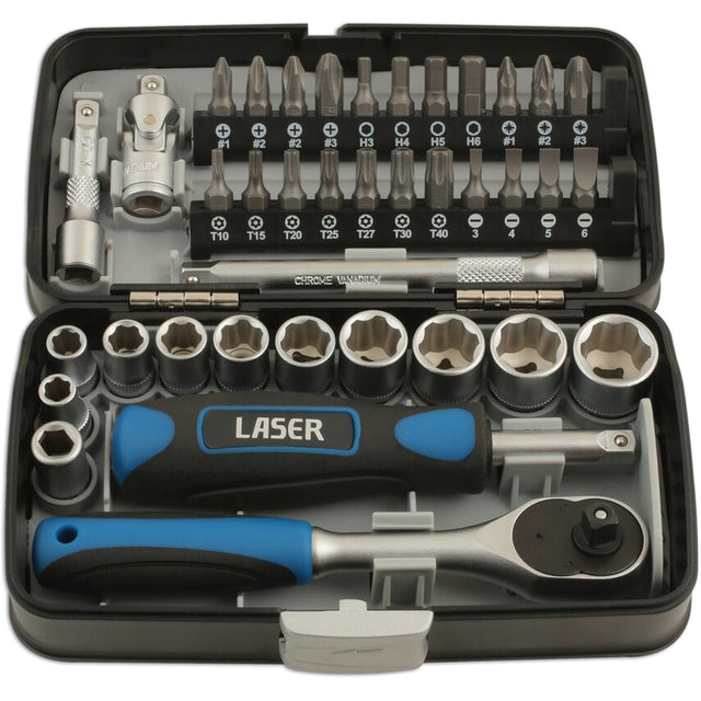 Miniature 1/4"D socket and bit set, from 5.5mm - 14mm, made from satin finish chrome vanadium sockets and S2 impact grade steel bits. Bits cover Phillips, Flat, PzDrive, Hex and Star/Torx. Feature and Benefits 10 x 1/4""D sockets x single Hex (6pt): 5.5, 6, 7, 8, 9, 10, 11, 12, 13, 14mm 22 x bits manufactured from S2 material: Phillips Ph1, Ph2, Ph2, Ph3; Flat 3, 4, 5, 6mm; PzDrive Pz1, Pz2, Pz3; Hex 3, 4, 5, 6mm; Star* T10, T15, T20, T25, T27, T30, T40 Bits are supplied in spring loaded bit holders for ease of use Accessories: 1/4""D ratchet with 72 teeth, bit driver, universal joint, 2 x extension bars: 50 & 100mm, coupler 1/4""D to 1/4"" Hex Typical Applications Automotive industry