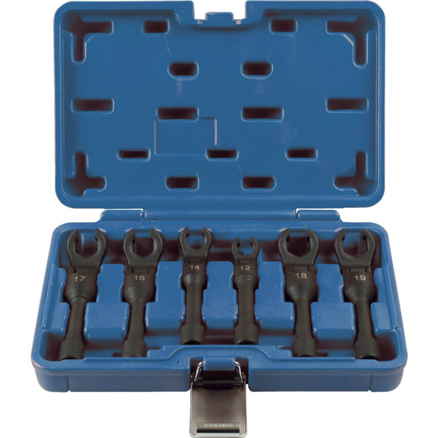 Diesel injection wrench set with flexi-heads for ease of use. Features and Benefits Sizes: 12 x 110mm; 14 x 115mm; 16, 17, 18, 19 x 125mm Single Hex (6pt) x 3/8"D Flexi-head for ease of use Manufactured from alloy steel with black phosphate finish
