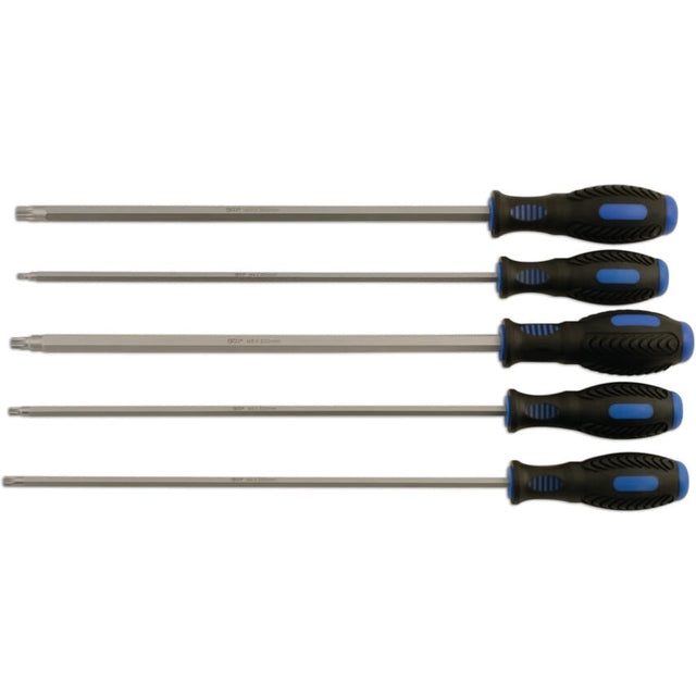 Spline screwdriver set in a useful range of sizes from M4 to M10 with extra-long 300mm shafts for reaching deep, restricted access fixings. A specialist screwdriver set, designed for spline and XZN fasteners.
