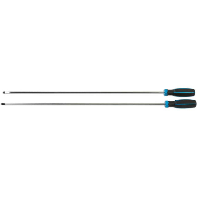 Extra-long screwdrivers in Flat and PzDrive profiles with magnetic tips and soft, comfort grip handles. The 550mm blade is long enough to access even the deepest fasteners and is particularly useful when other components are in the way.