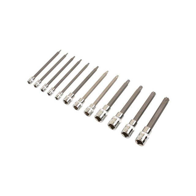 Set of 12 long tamperproof Torx socket bits from T8H to T60H