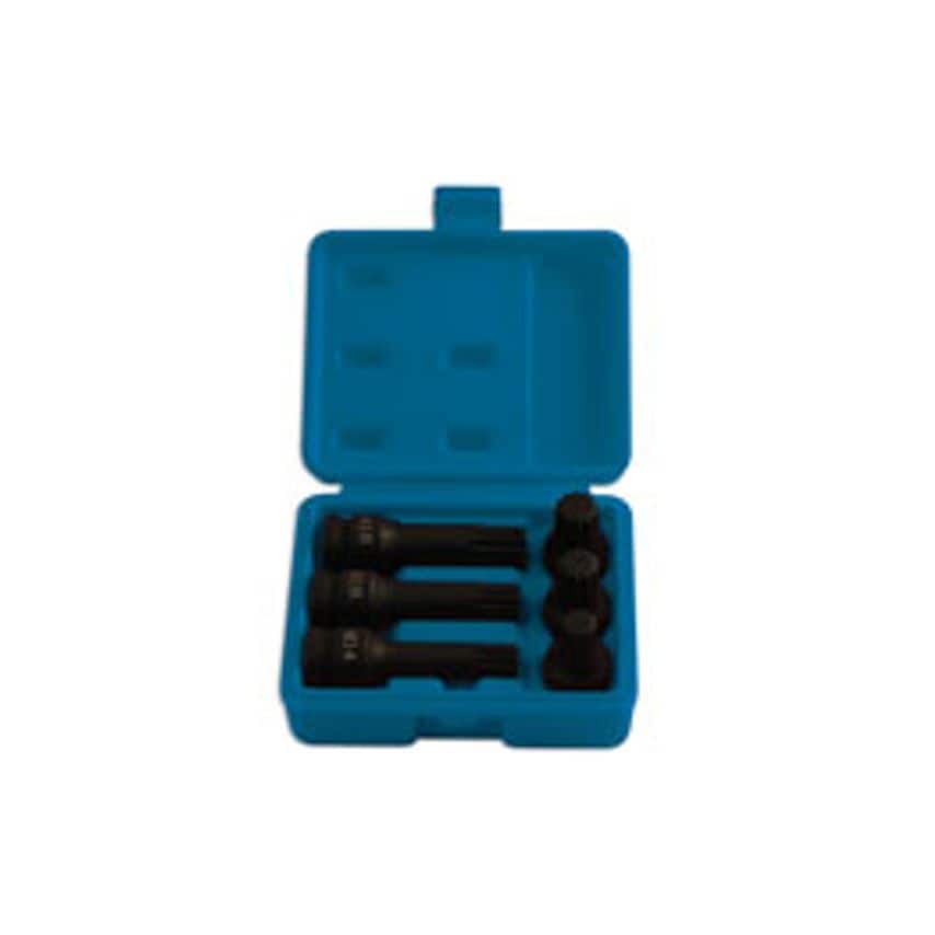 Set of impact Spline bits in Chrome Molybdenum steel for strength Impact quality.Manufactured from Chrome Molybdenum in black Phosphate finish. Sizes: M14, M16, M18 x 43mm/78mm long. Essential for VAG hubs and calipers on LT, Transporter, Golf and Sharan and rear calipers on a Porsche Cayenne.