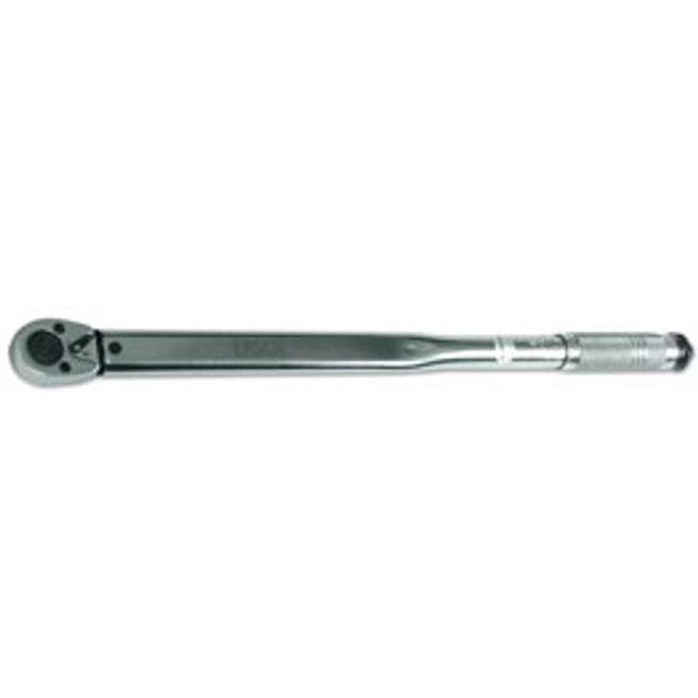 Mid range torque wrench, with dual scale and knurled grip handle. Suitable for a wide variety fo automotive and engineering applications. Range: 50 - 250lb-ft (6.9 - 34.5kg-m).25 teeth ratchet mechanism; 1/2"D x 630mm long. Accuracy: 4% tolerance from the set scale value. Supplied in blow mould case with calibration certificate.