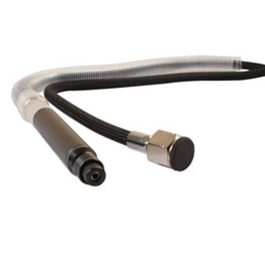 Super light and pencil-slim die grinder for intricate work or for tasks with limited access. Maximum speed: 70,000rpm.Collet 1/8"or 3mm; air hose length 1400mm; air hose fitting 1/4" female. Recommended air pressure 90psi (6.2 bar), sound pressure level 81 DB(A), sound power level 86DB(A), vibration 2.0m/sec. Weight 0.2kg. Supplied complete with 2 spanners.