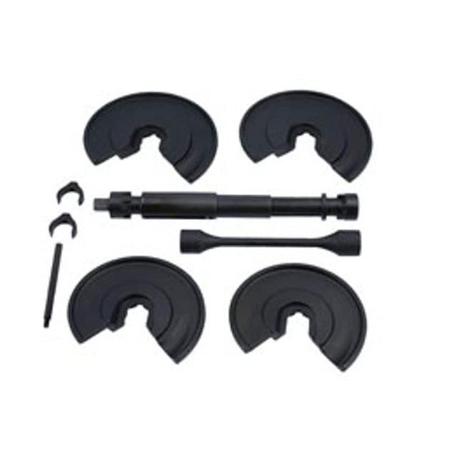 Internal coil spring compressor for wishbone, independent and multi-link suspension systems. Restricted access: Suitable for springs where the lower wish bone access hole is 30mm or bigger (tool shaft size 29mm).Applications: Chrysler, Chevrolet, Citron, Ford, Honda, Hyundai, Kia, Mazda, Mitsubishi, Peugeot, Renault, Skoda, Suzuki, Toyota, Volvo, Volkswagen. Including: BMW 3 series (1996 - 2013) Mercedes-Benz W202, W204 (1997 - 2013). Maximum load: 3800kgf (37,240N). Supplied with two forged steel pressure plates 150mm & 130mm. Manufactured from steel and Chrome Molybdenum