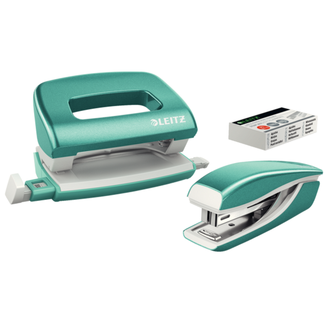 NeXXt WOW Mini Stapler and Hole Punch Set 10 Sheets. Handy Mini Version Includes Staples, In Blister Pack Ice Blue