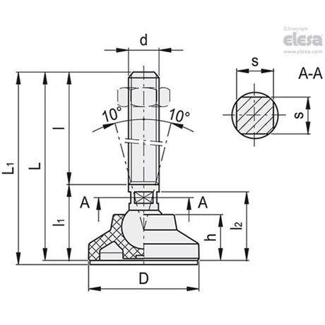 LSA Levelling feet Technopolymer base steel stem LS.A-32-8.5-AS-M10x68