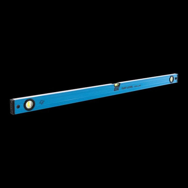 Built with the tradesman in mind, the OX Pro Series Tuff Levels are designed to take a beating. The aluminum body of the level is one solid piece, without handles or room for cement, mud, and other debris to get clogged. The level includes three vials, one for level, two for plumb. The vials consistently provide an accuracy of 0. 005"/ 1" or 5mm/m and are protected by structural reinforcement within the level. On each end of the body there are rubber end caps to protect the level from bumps, drops, and excess damage. The top and bottom of the level are both milled surfaces giving it a perfectly at edge and ensuring increased accuracy compared to a coated surface.