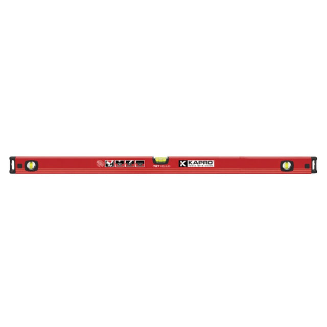 The Kapro 787 Helius Magnetic Level has rare-earth magnets for hands-free levelling on metallic surfaces. Fitted with three solid acrylic shockproof vials, one horizontal and the other two vertical. The level incorporates Kapro's wall grip feature allowing you to keep the level against a flat surface with one hand without scratching or damaging the wall. Shock absorbing rubber end caps prevent the level from getting damaged if it is dropped.