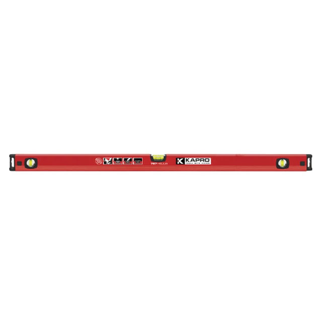 The Kapro 787 Helius Level comes with three solid acrylic shockproof vials, one horizontal and the other two vertical. The level incorporates Kapro's wall grip feature allowing you to keep the level against a flat surface with one hand without scratching or damaging the wall. Shock absorbing rubber end caps prevent the level from getting damaged if it is dropped.