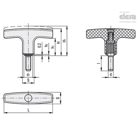 MBT Diamond cut knurled knobs Technopolymer Brass boss plain or threaded blind hole MBT.60 B-M12-C4