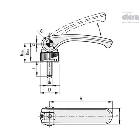 ERW Adjustable handles Flat lever technopolymer Zinc-plated steel threaded stud ERW.30-p-M6x30-C1