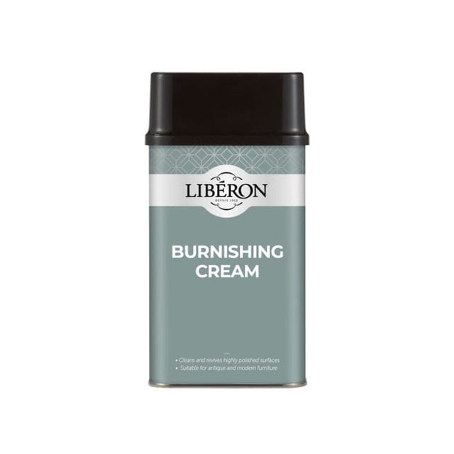 Liberon Burnishing Cream is designed to clean, revive and rejuvenate highly polished interior surfaces such as French Polish, lacquers and varnishes. This cream can also be used to remove haze and bloom from most modern finishes, as well as cover superficial scratches. Suitable for antique and modern furniture, it will clean ivory, tortoise shell, mother of pearl, papier-mch, brass inlays and fittings. Specifications: Dry Time: 5 minutes min.Coverage: 8-12m.Location: Interior.Application: Cloth.Tool Cleaning: White Spirit.