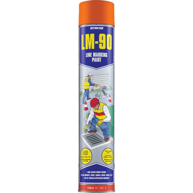 The LM-90 range of Line marking aerosol spray paints are the ideal multi-use paints for engineering, construction and warehouse applications. A permanent, highly durable formula allows it to be applied to both indoor and outdoor surfaces. Features and Benefits Quick-drying with a one-coat matt finish Can be applied easily either by hand or by using an application machine Versatile and can be used on many surfaces including concrete, stone, tarmac, grass, gravel and even soil Typical Applications Civil engineering Construction Warehouse Car parks/pavements Utilities Notes Colour references are as follows: BLACK - Finished Goods Areas WHITE - Production Equipment GREEN - Safety Related Areas RED - Defect Areas BLUE - Work in Progress YELLOW - Access Aisles ORANGE - Machinery Parts Areas