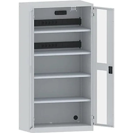 Low stock (10 units)£505.99Unit price /UnavailableBattery Charging Cabinet, 4 Shelves, Vision Panel Doors, 2 Power Strips At Rear, Grey