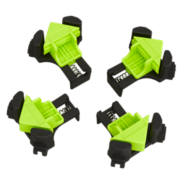 Fast and simple for fixing frames at a 90 angle. Ideal for wood thickness of 5-22mm. Aid for screwing or gluing joints together. Single hand operation. Ideal for making picture frames, small cupboards and assembling shelves.