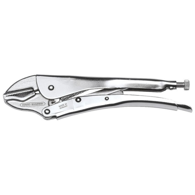 Forged, tempered jaws and special jaw shape for secure gripping, clamping and holding GEDORE vanadium steel 31CrV3, nickel-plated Jaw body in high-tensile sheet steel Automatically welded upper jaw - absolutely firm connection with the sheet steel body Well-conceived jaw design guarantees a three-point contact with all material cross-sections Threaded bore welded at bottom No widening under most extreme loading Safe release Release lever under constant pressure of special spring Release lever under constant pressure of special spring