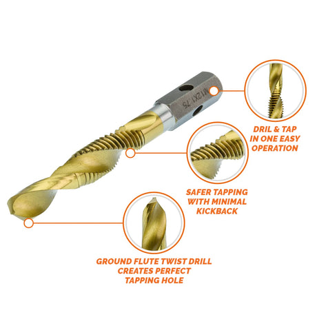 Low stock (10 units)£52.79Unit price /UnavailableVersaDrive Spiral Flute Combi Drill-Tap M10 x 1.5mm