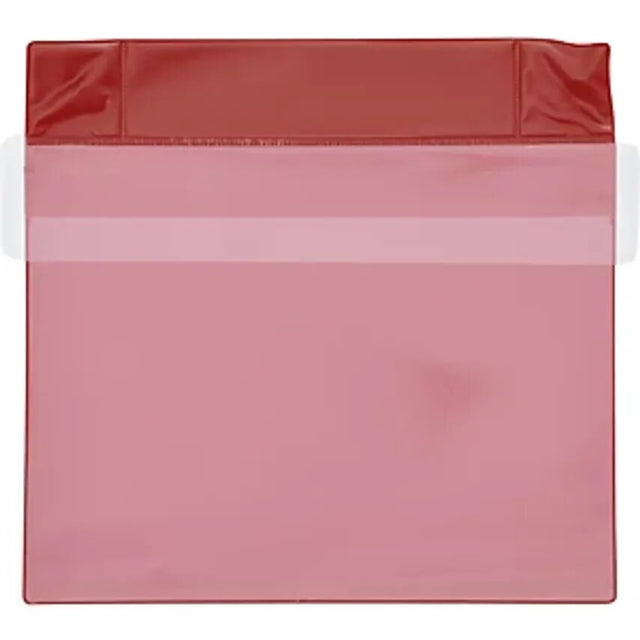 Neodymium magnetic pockets, landscape format, with rain protection flap, pack of 25, red, A4, 2+ packs. Supplied = assembled. Colour = red. Description of document pouch = with rain protection flap. Type of mounting = magnetic. Model = landscape. Product type = document pouches. With two extremely powerful magnets. For labelling metallic storage and transport containers.