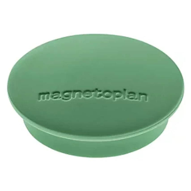 DISCOFIX JUNIOR magnet, 34 mm, pack of 60, green. Supplied = assembled. Diameter = 34 mm. Colour = green. Adhesive force = 1.3 kg. Shape = round. Feature = magnetic. Height = 9 mm. Product type = round magnets. Equipped with a full ferrite core, giving them a particularly high adhesive force. A wider edge makes the magnets easy to detach from the surface. High quality adhesive guarantees a strong bond with the plastic caps on the magnets. Specially coated bottom side prevents boards from being scratched. Magnets are practical items to have. They help keeping things organised and clearly laid out in the office, workshop, administrative departments, schools and households - wherever ferrous surfaces are available, e.g. steel walls, steel furniture, refrigerators etc. Magnets can be used to securely attach drawings, photos, letters, plans and similar items without damaging the surface.