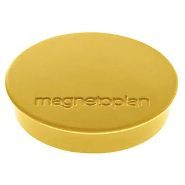 DISCOFIX STANDARD magnet, 30 mm, pack of 80, yellow. Supplied = assembled. Diameter = 30 mm. Colour = yellow. Adhesive force = 0.7 kg. Shape = round. Feature = magnetic. Height = 8 mm. Product type = round magnets. Specially coated bottom side prevents boards from being scratched. High quality adhesive guarantees a strong bond with the plastic caps on the magnets. A wider edge makes the magnets easy to detach from the surface. Magnets are practical items to have. They help keeping things organised and clearly laid out in the office, workshop, administrative departments, schools and households - wherever ferrous surfaces are available, e.g. steel walls, steel furniture, refrigerators etc. Magnets can be used to securely attach drawings, photos, letters, plans and similar items without damaging the surface. Magnet equipped with a full ferrite core, adhesive force 0.7 kg, size 30 x 8 mm.