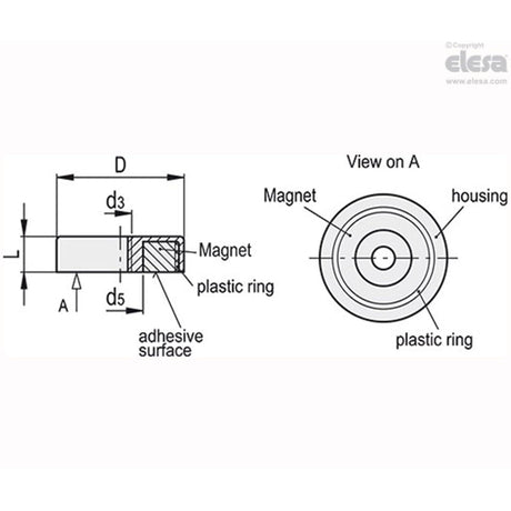 Rmf - Rmh Flat Retaining Magnets Female or Male Thread Threaded Hole RMF-ND-43-BK
