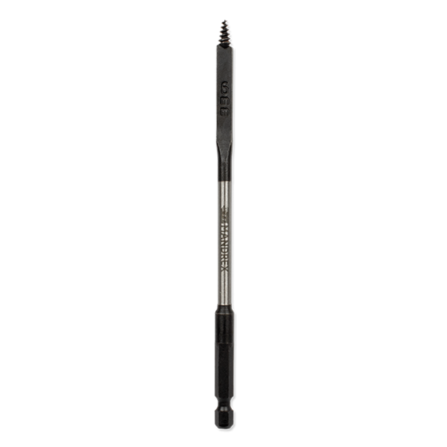 Extreme fast drilling of holes compared to conventional flat spade drill bits. Our unique self-feeding threaded QuickTip Technology enables the drill bit to effortless pull itself into the wood. Precision grounded cutting edges for faster drilling and longer life time and a black oxide finish for more durability. Suitable for use on soft and hard wood, light building materials and plasterboard. This spade bit has a 1/4-inch hex shank and can be used in electric battery powered & cordless power tools, including impact drivers. FEATURES - Widest range of wood & wooden materials - Extremely fast because of the self-feeding QuickTip technology - Cutting depth 152 or 406mm - Hex 1/4-inch powerbit shank - Highest grade hardened steel cutting edges - Suitable for use in electric & battery powered tools