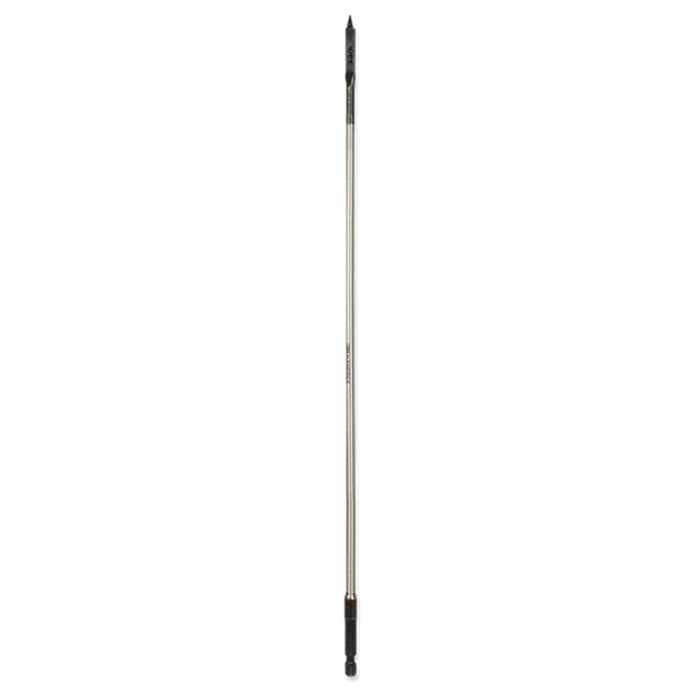 Extreme fast drilling of holes compared to conventional flat spade drill bits. Our unique self-feeding threaded QuickTip Technology enables the drill bit to effortless pull itself into the wood. Precision grounded cutting edges for faster drilling and longer life time and a black oxide finish for more durability. Suitable for use on soft and hard wood, light building materials and plasterboard. This spade bit has a 1/4-inch hex shank and can be used in electric battery powered & cordless power tools, including impact drivers. FEATURES - Widest range of wood & wooden materials - Extremely fast because of the self-feeding QuickTip technology - Cutting depth 152 or 406mm - Hex 1/4-inch powerbit shank - Highest grade hardened steel cutting edges - Suitable for use in electric & battery powered tools