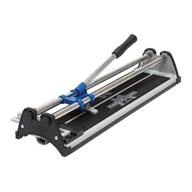 This versatile Marshalltown Tile Cutter can cut ceramic, porcelain, and mosaic tile up to 432mm (17in) long and 12mm (1/2in) thick. It can also cut tile up to 305 x 305mm (12 x12in) at a 45 angle. The tile cutter has a two-rod rail system for smooth operation. Its tungsten carbide scoring wheel scores the tile for quick, easy cuts. An adjustable measuring guide ensures precise cuts.