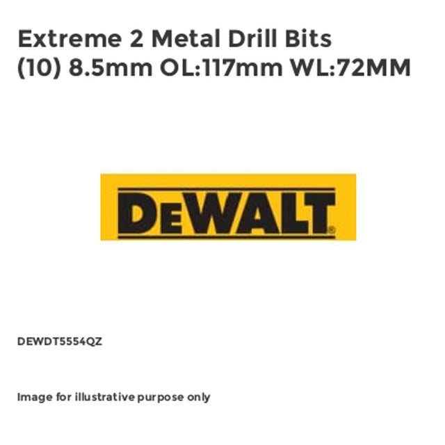 The DEWALT Extreme 2 Metal Drill Bit is suitable for portable or stationary drilling of steel, alloyed and non-alloyed, up to 900N/mm. Particularly suited to drilling sheet or thin materials where accurate burr-free holes are required. Very effective in wood and plastic materials. The patented split pilot point design eliminates walking/slipping on contact.