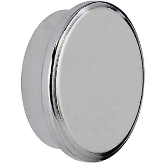Neodymium power magnet, round, 30 mm, holds 21 kg, pack of 5. Supplied = assembled. Diameter = 30 mm. Colour = silver. Adhesive force = 21 kg. Shape = round. Product type = neodymium magnets. High adhesive force at a low volume. Round shape with stepped edge for a better grip. Designer form and surface, looks elegant on a board or magnetic strips. Solid, refined steel housing. For design-oriented users, in representative rooms, agencies, museums.