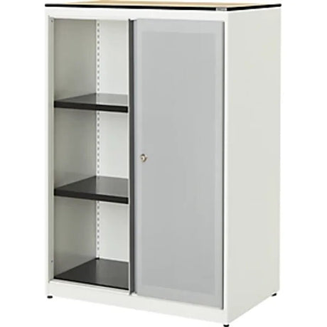 Sliding Door Cupboard - HxWxD 1180 X 800 X 432mm - Pure White/White Aluminium/White