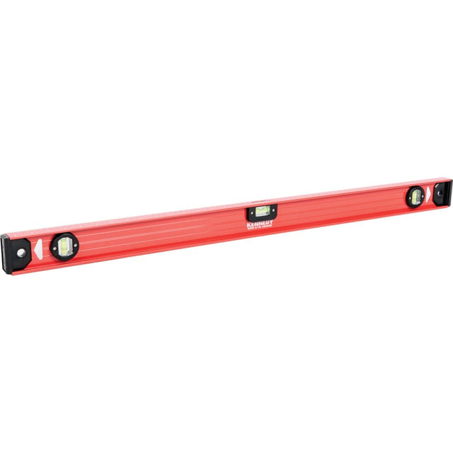 Available in a range of sizes, these robust, red finish I-Beam spirit levels are ideally suited for regular use on harsh and busy construction sites. Comprised of an aluminium body with a powder coating, shock absorbing end caps and one horizontal and two plumb vials, the product ensures highly accurate measurements every time with an accuracy of 1.0mm/m. Features and Benefits Lightweight yet robust aluminium body is suited for heavy duty use on punishing construction sites Available in an array of sizes to ensure you find the product best suited for your desired application Powder coat finish further protects the product from wear and tear as well as making it easier to wipe clean Shock absorbing end caps protect the vials from damage in case of accidental dropping Three vials for all round measuring, one horizontal and two plumb Rule scale makes marking out simple Milled working surfaces for accurate measuring Typical Applications Engineering DIY Construction Notes Product is not magnetised, finished with a plain base