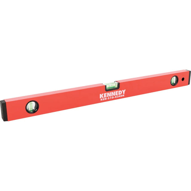 Constructed from a lightweight aluminium body with a red powder coat finish, this range of box spirit levels are durable and can withstand everyday punishment. With 1 horizontal and 2 plumb vials, each level possesses an accuracy of 0.75mm/m. Complete with shock absorbing end caps and milled working faces. Available in varying sizes.