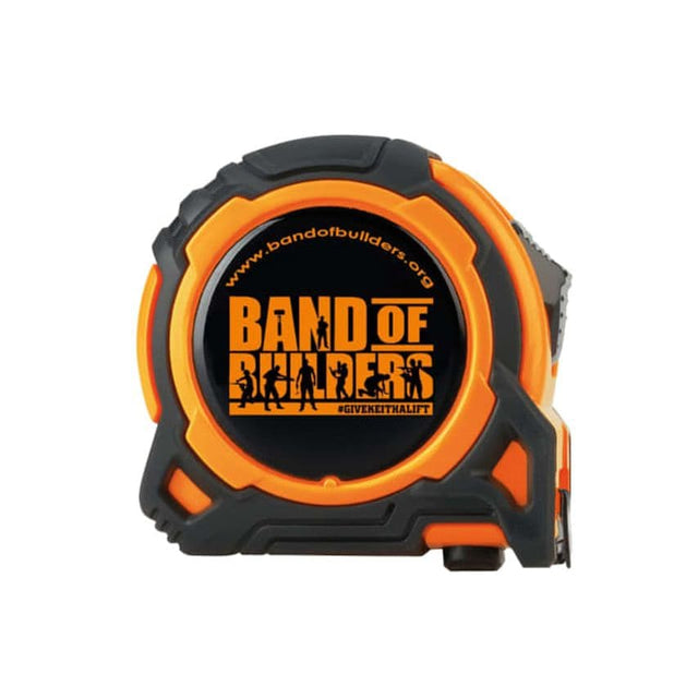 The Band Of Builders Tape Measure has a non-reflective blade with both metric and imperial blade markings. Fitted with a three rivet, true zero end hook. The ABS plastic case and rubber outer protect the tape from damage. There is also a handy belt clip. Designed in the UK. Donation made to Band of Builders from each sale. UKCA/CE Approved. Class II Accurate.