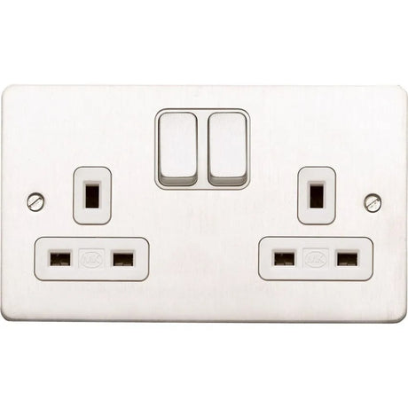 Socket 2G Switch DP Dual Earth 13A Brushed SS White Inserts