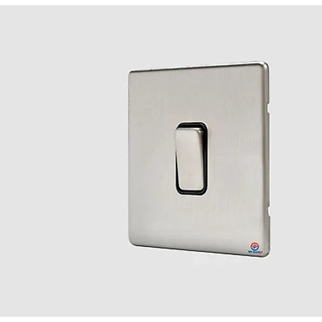 Low stock (10 units)£19.79Unit price /UnavailableGrid Switch 1 Way SP Neutral Term 10A x Brushed Stainless Steel White I
