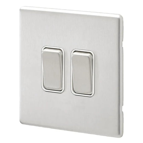 Low stock (10 units)£54.99Unit price /UnavailablePlate Switch 2 Gang 2 Way SP 20A Brushed Stainless Steel White Inserts