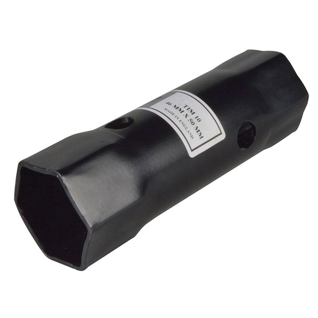 Double ended box spanners are thinner than a socket and are much longer so that they can be used to loosen or tighten bolts and nuts in narrow recesses, meaning that they are often used in plumbing maintenance and automotive repair. This tubular box spanner is made from bright plated steel and able to accommodate a tommy bar.