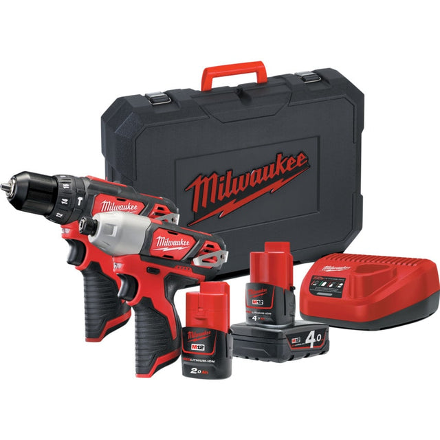 Pack includes: M12BPD, M12BID, 1 x 2.0Ah battery, 1 x 4.0Ah battery, 1 x C12C, BMC
